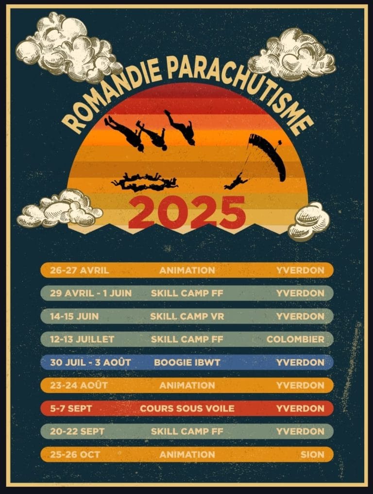 Romandie Parachutisme est comme une grande famille unie autour d’une passion commune : le parachutisme sportif. La bienveillance est notre règle d’or et tout un chacun est bienvenu chez nous quelles que soient son origine, son expérience ou la discipline pratiquée. Viens voler avec nous !